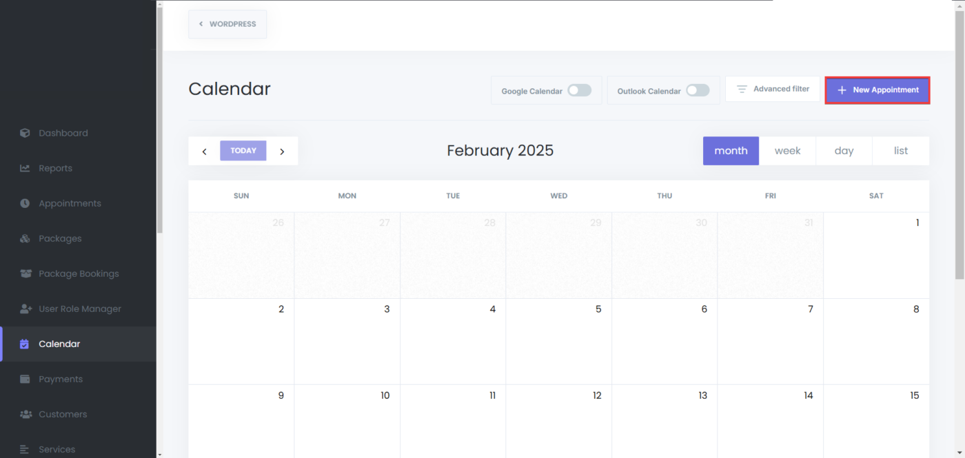 - Go to the Appointments menu, or the Calendar module, and click on “New Appointment”: