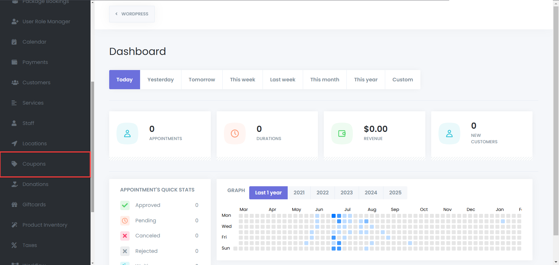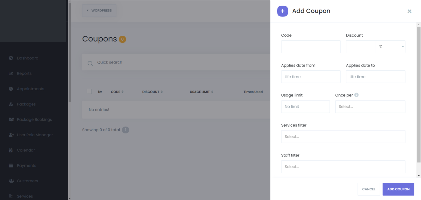 - Using coupons while creating appointments from the admin panel