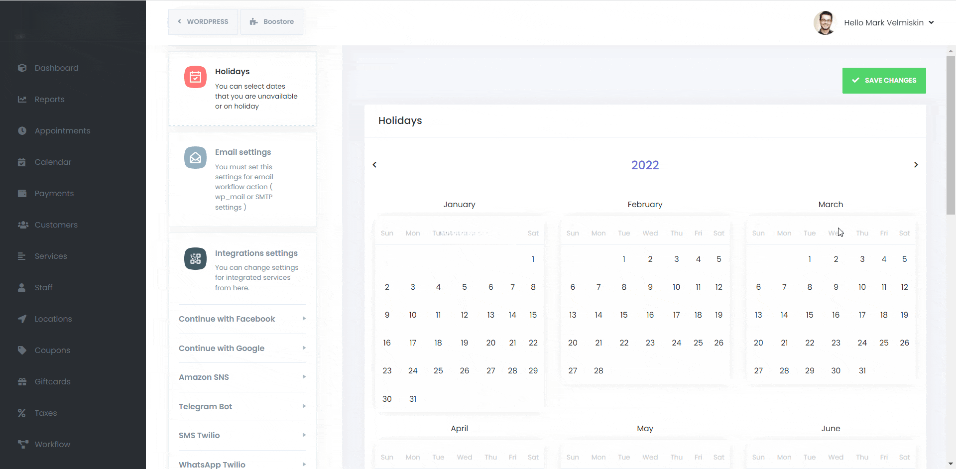 By properly configuring holidays, you prevent clients from booking on days when services cannot be delivered.