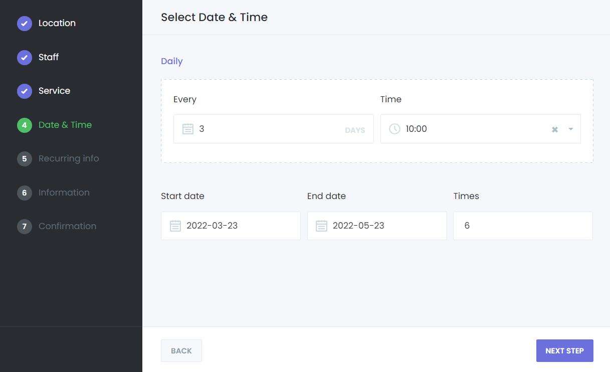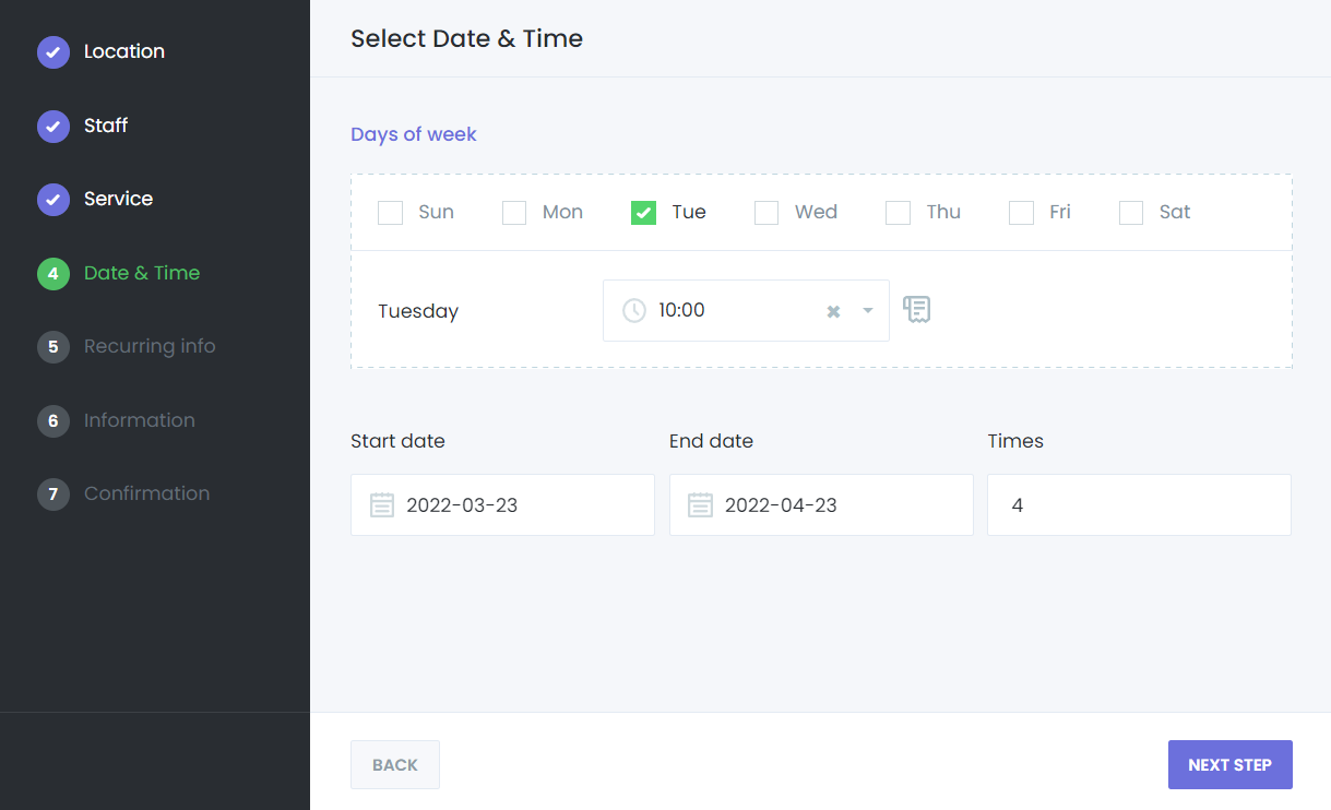 With the Recurring Appointments feature, you can provide the opportunity to your customers to choose multiple days while making appointments. #