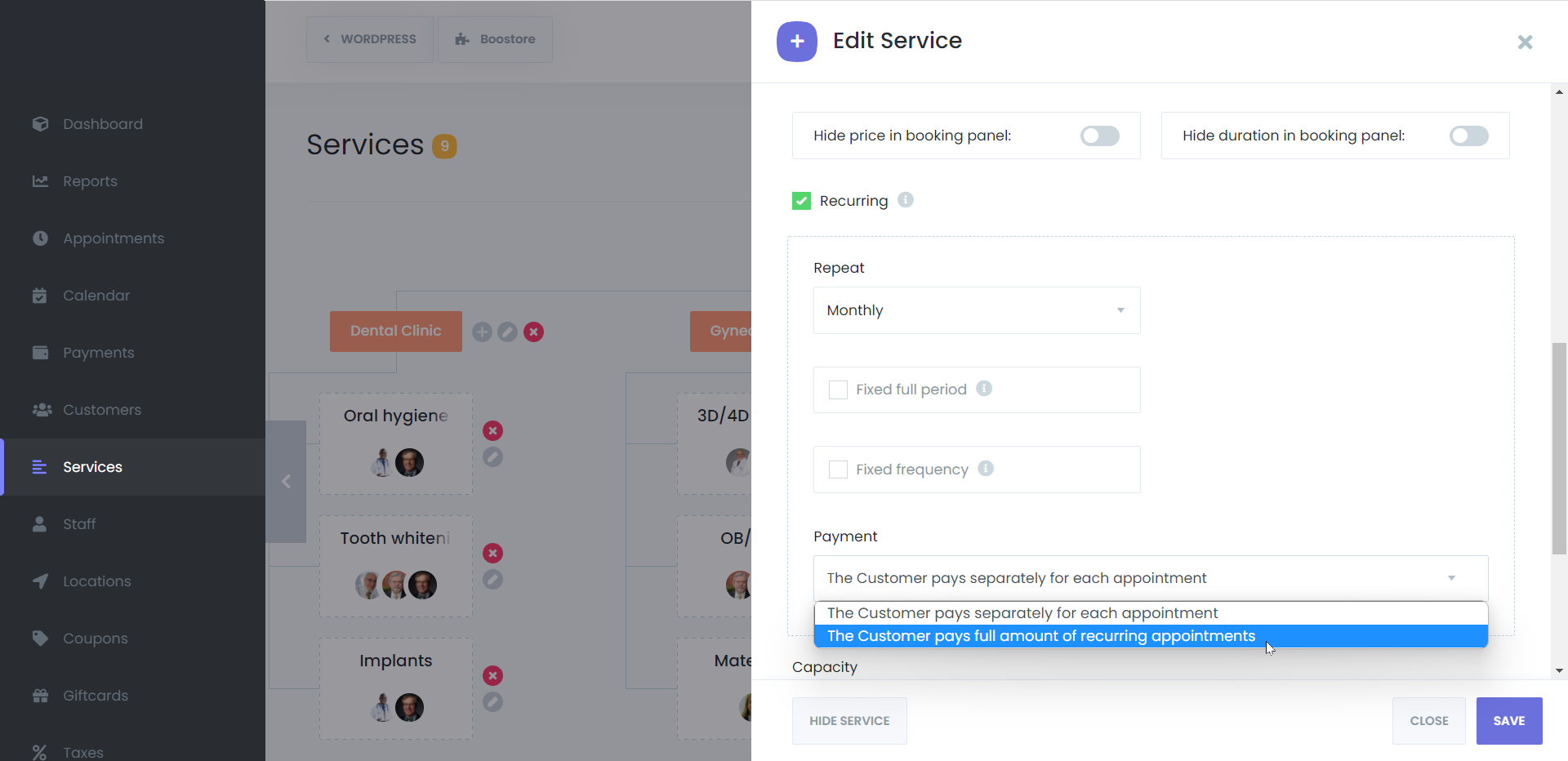 You can also ask your customers to pay for all appointments at once or to pay for appointments one by one.