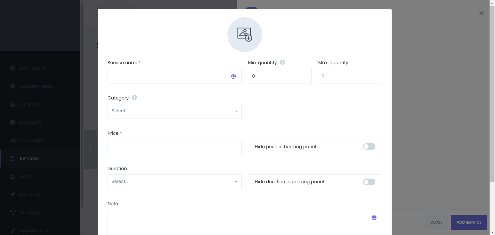 - Upload an image that visually represents the service.