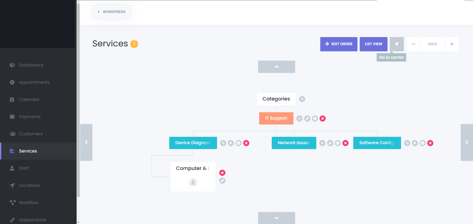 Bookissa offers an interactive Service Structure Map, allowing you to visualize your service hierarchy.