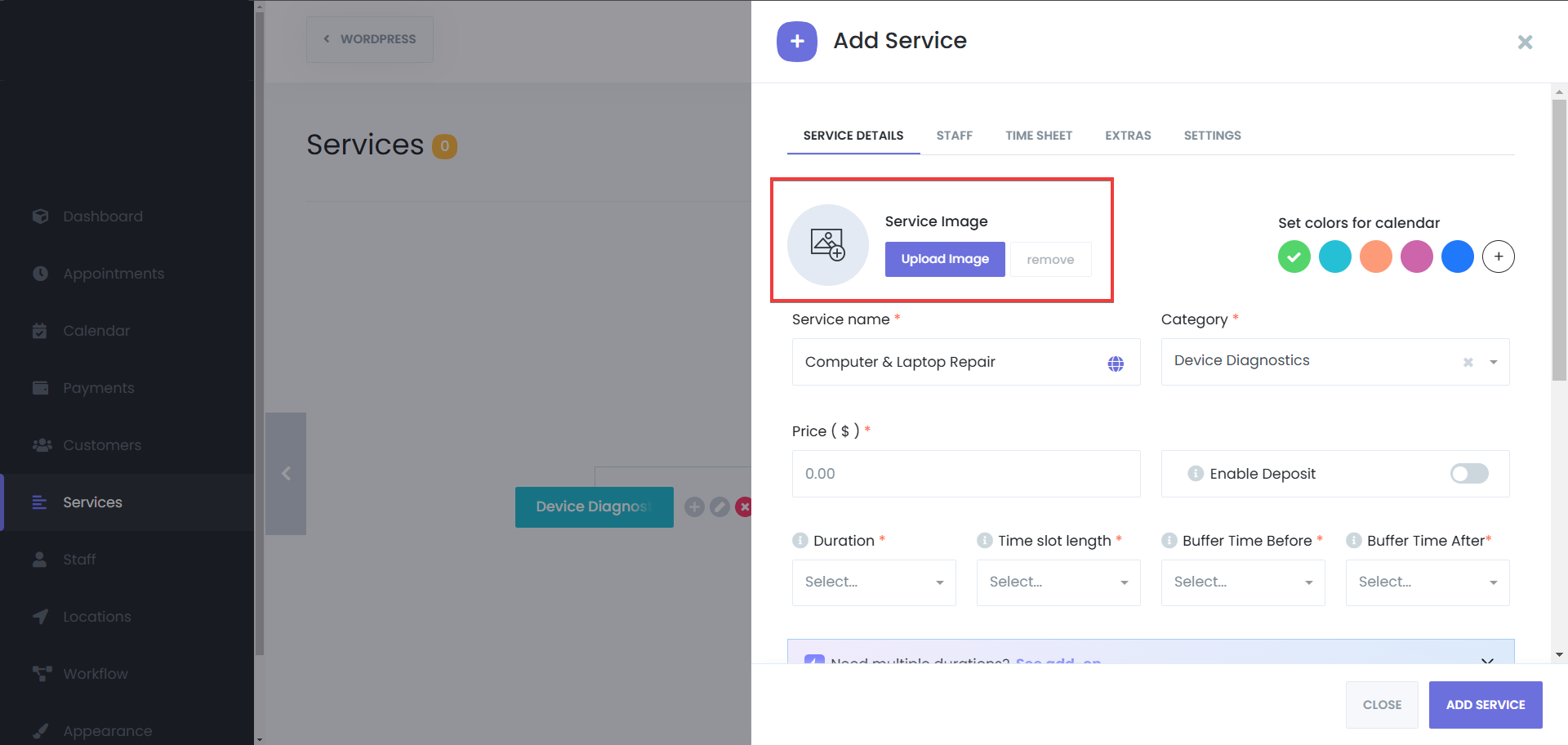 - Service Duration & Buffer Time